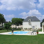 The property is made up of several dwellings in white Loire stone (tuffeau), located around a large shaded and flowery courtyard.